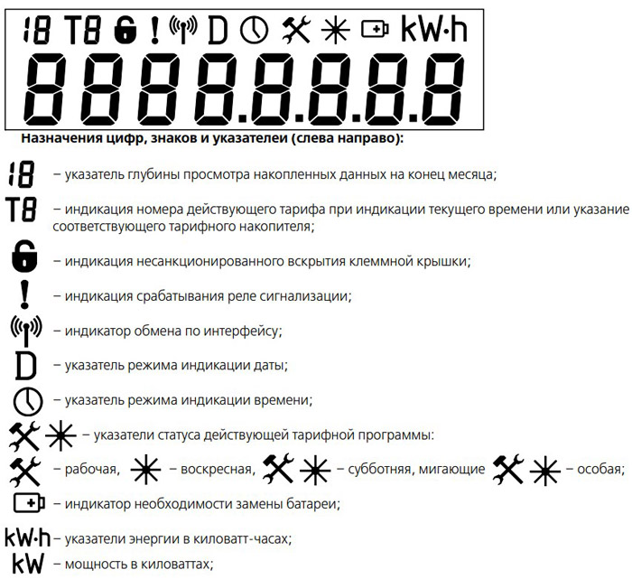 Счётчик позволяет вывести на дисплей следующую информацию:
