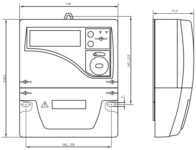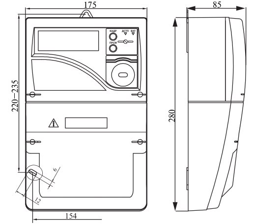 Предусматривает на возможность монтажа на ДИН-рейке или в электропанели. Укомплектован двумя крышками, оптическим портом и интерфейсом RS485.