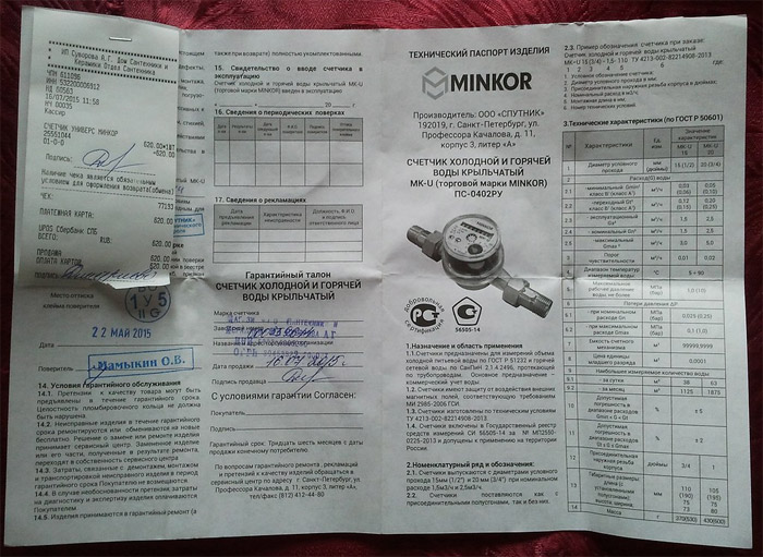 Если паспортная документация отсутствует у вновь установленного прибора, до наложения пломб и официальной регистрации, потребителю не получится зарегистрировать счётчик, поскольку невозможно установить исправность счётчика и срок его последующей поверки.