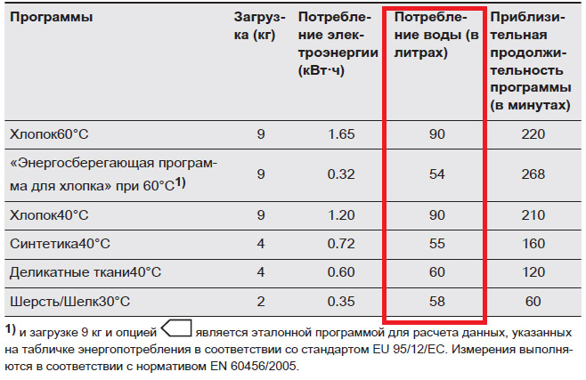 Характеристики расхода энергоресурсов автоматическими стиральными машинами указаны в паспорте оборудования. При выборе модели, потребителю, кроме цены на технику, необходимо обращать внимание на параметры экономичности, согласно сведениям, отражённым изготовителем в паспортной документации.