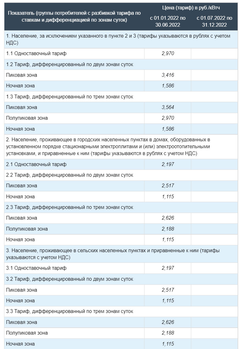 При двухставочном тарифе: зона пика – с 7:00 до 23:00; ночная зона – с 23:00 до 7:00.